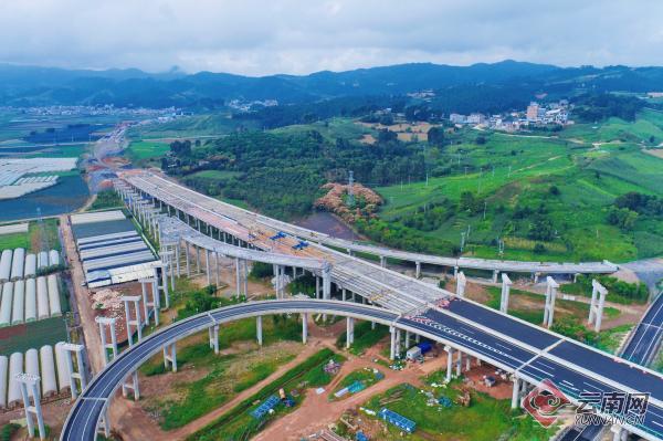 据了解,泸丘高速公路横跨红河哈尼族彝族自治州泸西县与弥勒市,全线总长27.518公里,桥隧比达72%。逸圃枢纽互通位于泸西县中枢镇夸西村附近,共设8条匝道,其中泸丘高速(红河段)占用4条,是全线重要工程节点之一。作为该互通主线桥,逸圃大桥左右幅预制T梁共255片,全长404.64米。目前,D匝道已完成44片T梁架设,正全面推进桥面系施工;H匝道已完成3联现浇箱梁,预计9月底全部完工;A匝道和E匝道桥梁上构施工计划于10月中旬完成。该路段建成后,将为泸西县打造直连永宁乡的高速通道,显著提升区域人流与物流周转效率,对巩固脱贫攻坚成果、全面推进乡村振兴具有重要现实意义。