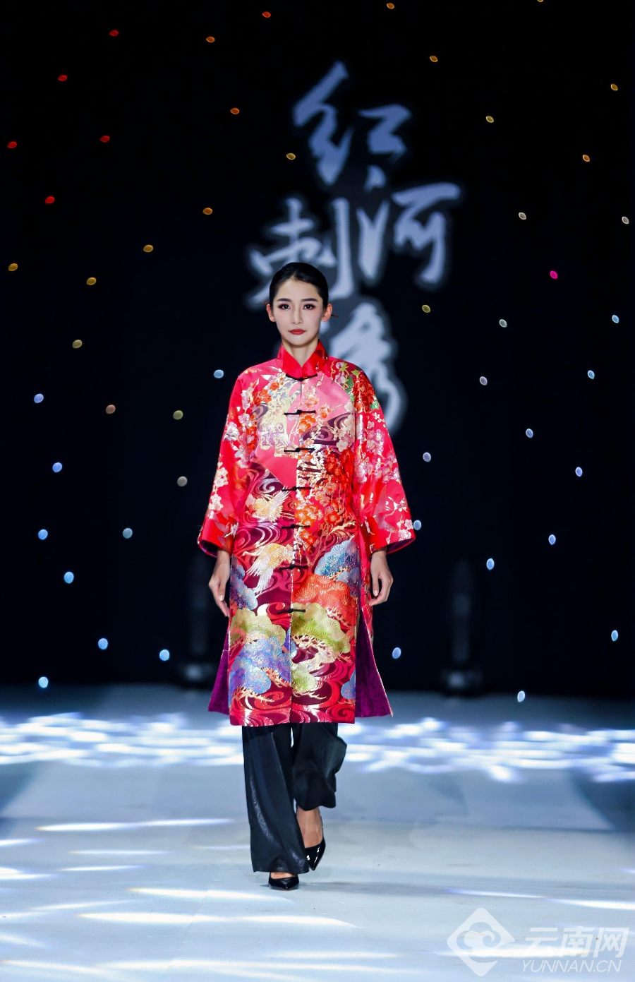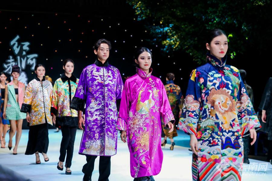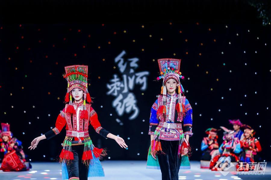 当天,伴随着开场舞《马缨花》的热情旋律,身着绚丽民族服饰的模特们款款走上T台,正式拉开展演的序幕。整场展演分为“绣美红河”“绣意新篇”“彝绣焕彩”“名绣新韵”4个篇章,如一幅徐徐展开的画卷,引领着观众感受红河多元民族文化的独特魅力与传承创新的力量。