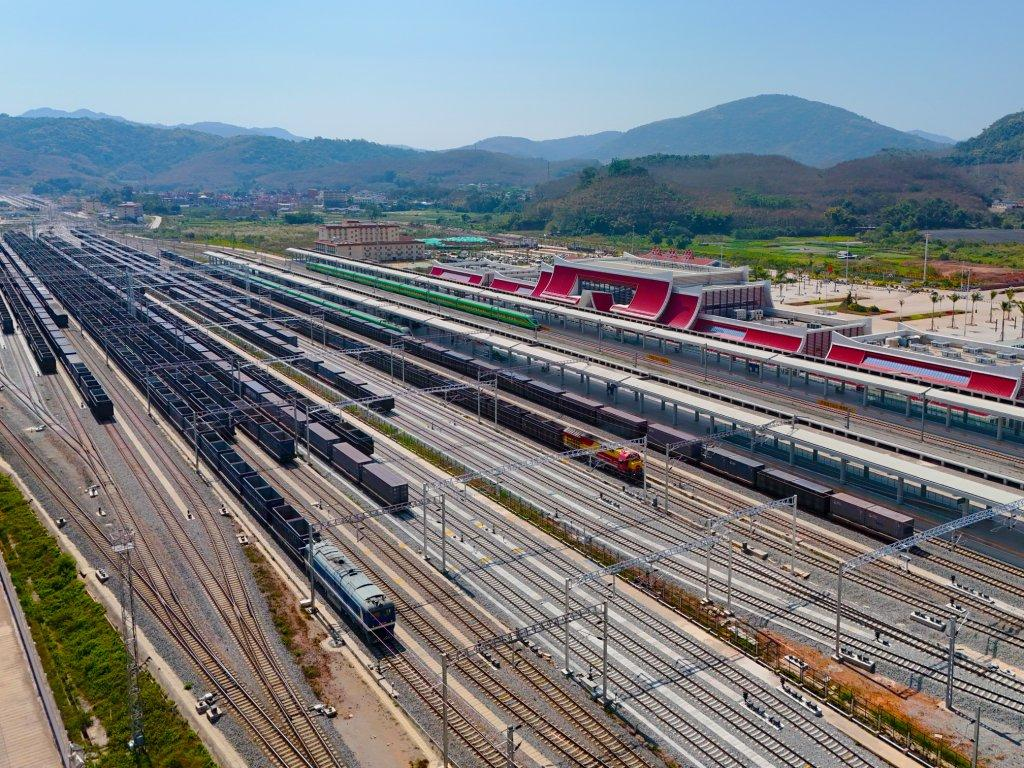 中老铁路磨憨站国际货运站场。