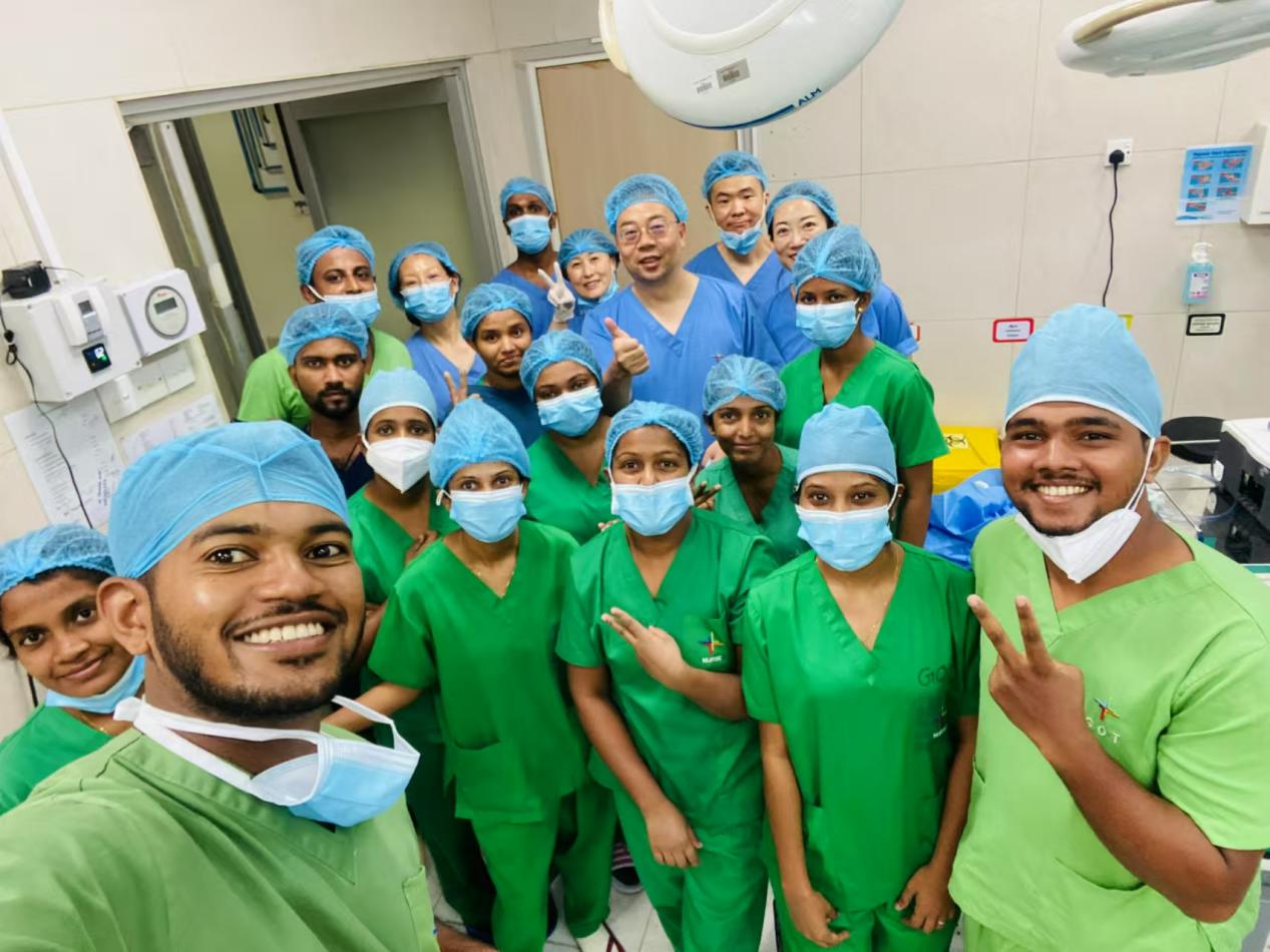 圆满完成手术任务的斯里兰卡和中国医护人员合影留念。昆明医科大学第一附属医院供图