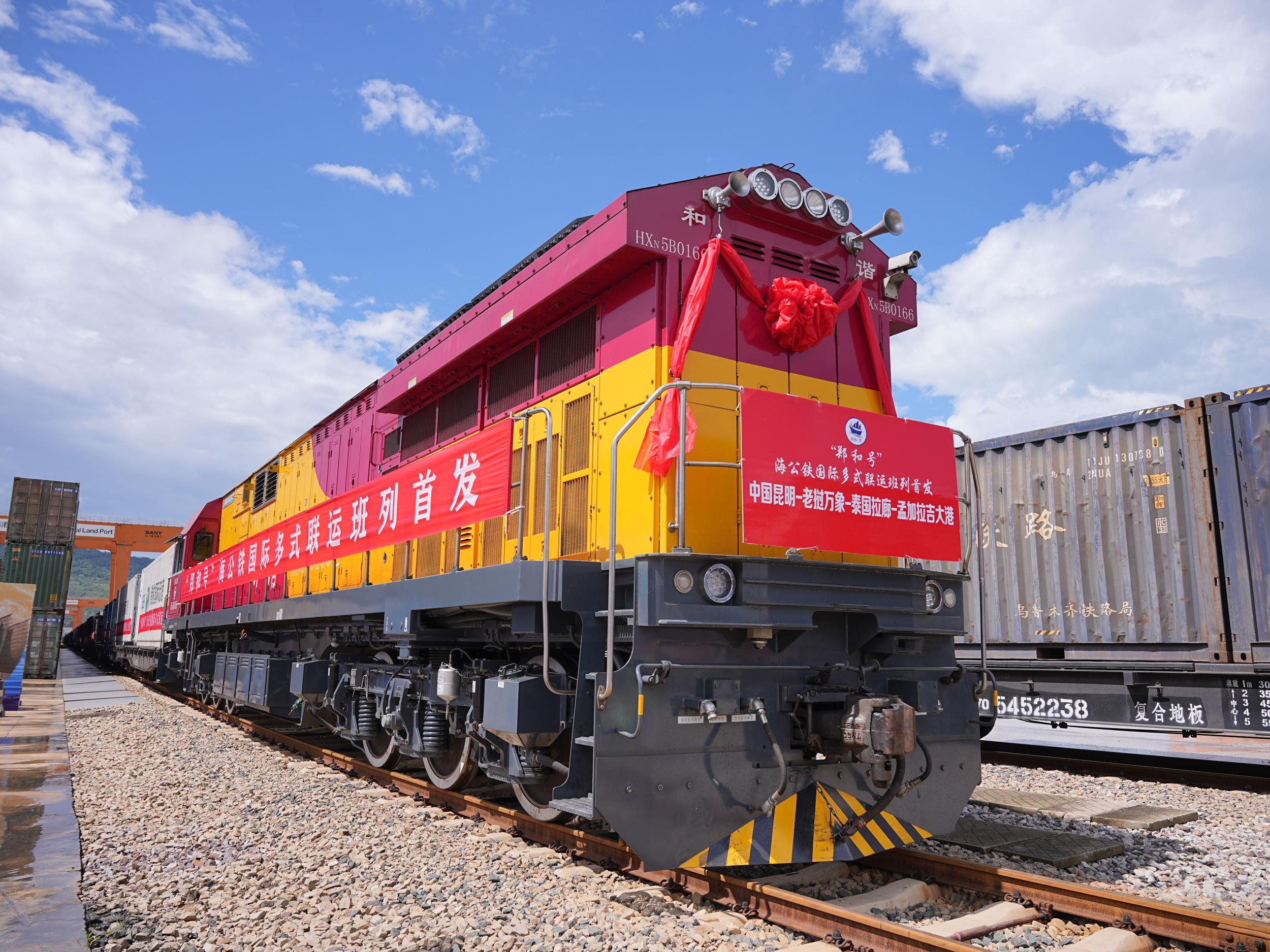 2025年7月4日,“郑和号”海公铁国际多式联运班列首发。腾俊国际陆港供图