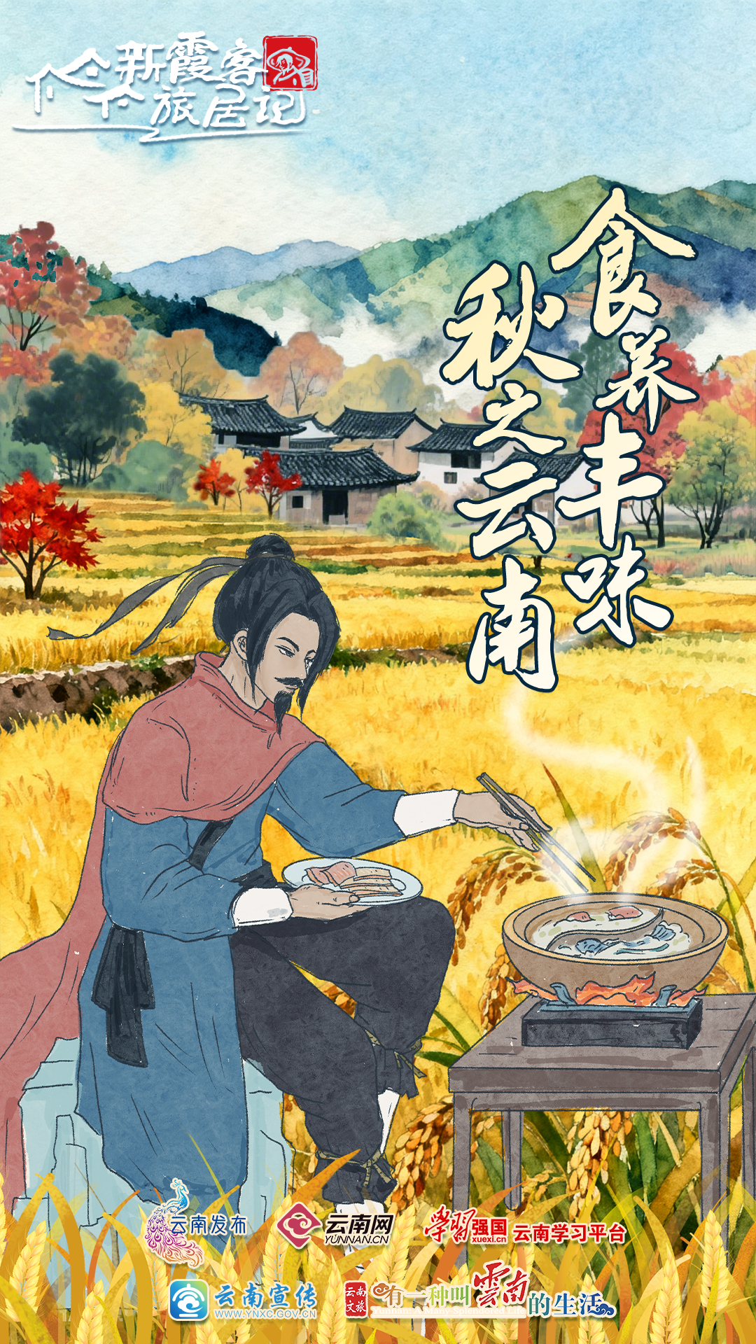 “一年好景君须记,最是橙黄橘绿时。”秋天,正是人间丰收的好时节,若此时徐霞客来到物产丰饶的云南,定能在行囊中塞满山野的丰腴,山珍野味、时令果蔬、滋补药膳……云南人总能用源于自然的智慧,将季节的馈赠化作舌尖上的风味,一道羊汤锅、一桌三七宴、一盘鲜石榴……让我们一起在云南的秋日风光中,与徐霞客共赴这场食养丰味之旅。