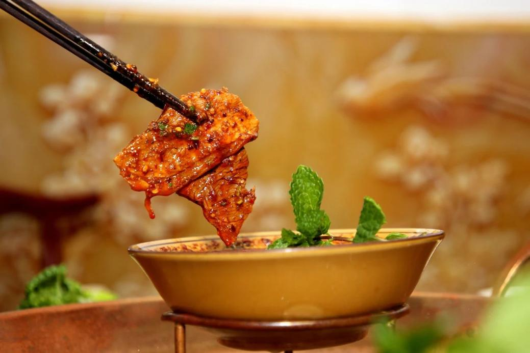 与三两好友寻一地道小店坐下,看羊汤在铜锅里翻滚,清亮的汤底泛着微微的油花,撒一把新鲜的薄荷叶,鲜香与清爽交织,一口汤下去,从胃暖到心。铜锅下炭火噼啪作响,羊肉在滚汤里微微颤动,夹上一片嫩肉,蘸上特制的糊辣椒蘸水,香辣鲜嫩,再配上一碗羊汤泡饭,便是最地道的会泽味道。