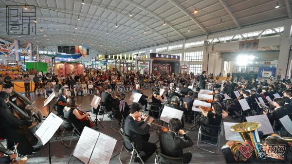 作为本届文博会创意昆明馆的重要组成部分,“春城之乐·城市音乐会”第九场——“文博雅韵”专场为观众呈现了一场兼具民族底蕴与国际视野的高品质音乐盛宴。演出乐团昆明文旅爱乐乐团为交响乐团,成员涵盖省市专业剧团退休资深演奏家、专业院校青年演奏员及优秀业余演奏者。节目精选中外经典,《北京喜讯到边寨》《茉莉花》《卡门序曲》《红旗颂》等曲目轮番上演,既有民族风情,又含世界经典,为文博会增添艺术亮色。