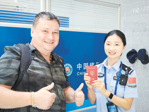 9月25日13时30分,一名俄罗斯旅客在磨憨铁路口岸快速办理边检入境手续,成为我国对俄罗斯免签生效后磨憨铁路口岸首名享受该政策的俄罗斯人员。