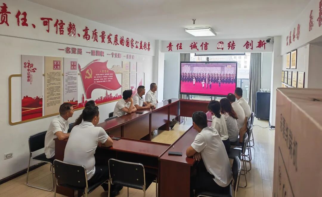 大会现场,天安门广场庄严肃穆,五星红旗迎风飘扬。整齐的方阵、先进的装备,展示着国家的强大实力。各界代表齐聚一堂,共同见证这一伟大时刻。激昂的国歌、震撼的礼炮,每一个瞬间都深深烙印在人们心中,唤起对那段浴血奋战岁月的深刻记忆,也彰显着中国人民维护和平的坚定决心。会议室内,大家全神贯注,被大会的庄严氛围所感染,观看大会直播的中心全体干部职工心潮澎湃、频频鼓掌。大会结束后,中心各个党支部的干部职工们感慨万千。