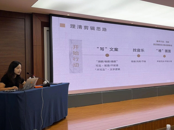 9月15日,邀请云南网新闻中心首席记者、新闻中心视频组组长刘畅以“拍摄运镜‘组合拳’让你的视频不再单调”为主题,结合体育彩票宣传常见场景,从基础的“推、拉、摇、移”运镜手法,到针对体彩实体店环境、公益活动现场的特色运镜组合,通过案例拆解、现场演示的方式,让参训人员掌握“用镜头讲故事”的技巧,解决了以往视频“画面呆板、缺乏吸引力”的问题。云南网新闻中心视频记者陈思蒙以“从‘视’和‘听’讲起:什么是视频剪辑思路”为主题,从视觉节奏把控、音频搭配技巧、内容叙事逻辑三个维度,引导参训人员理解“剪辑不是素材拼接,而是让视频更有感染力”的核心,通过对比优秀与普通剪辑作品,帮助学员快速找到提升视频质量的关键。