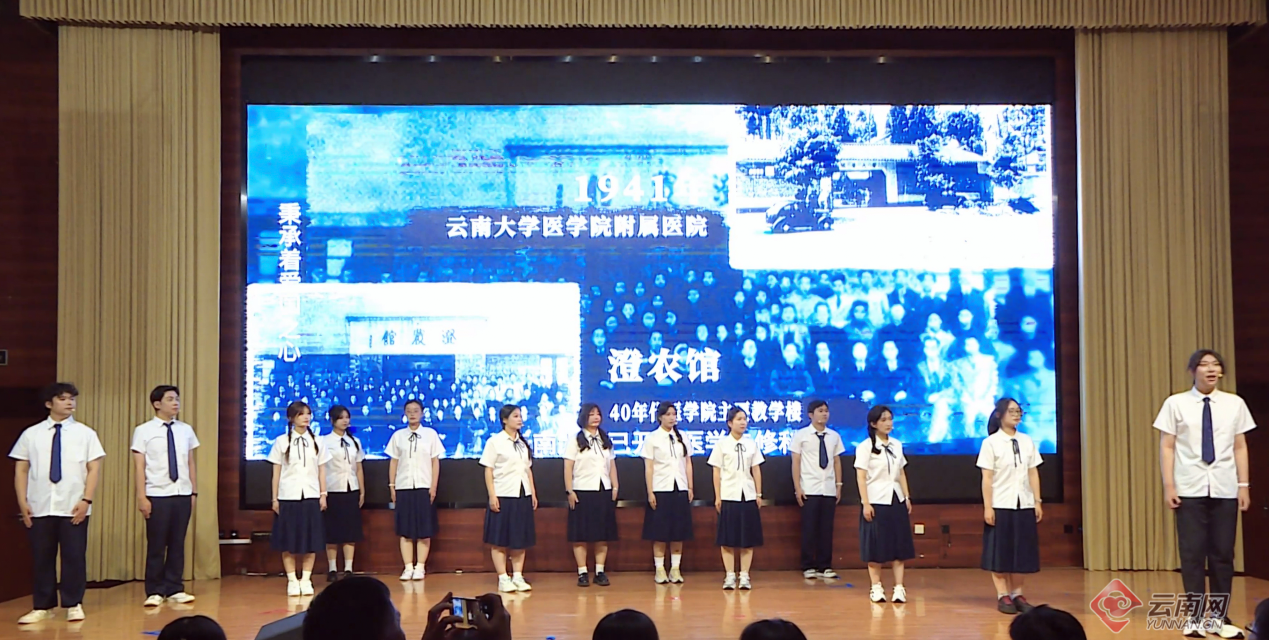 晚会特邀音乐社与校艺术团助阵。窄门乐队以《生活因你而火热》,用激昂旋律点燃青春激情,让青春向上风貌在音符跃动间传递。民族舞《火塘欢歌》以曼妙舞蹈展现民族团结同心圆,将铸牢中华民族共同体意识融入艺术审美。合唱《云南大学校歌》以嘹亮歌声唱出云大医学人的自豪感;诗朗诵《我的祖国 我的云大》将气氛推向高潮,抒发全院学子对祖国的赤诚热爱、对母校的深厚眷恋、对未来的坚定信念,让家国情怀与医者初心在心灵深处深深扎根。