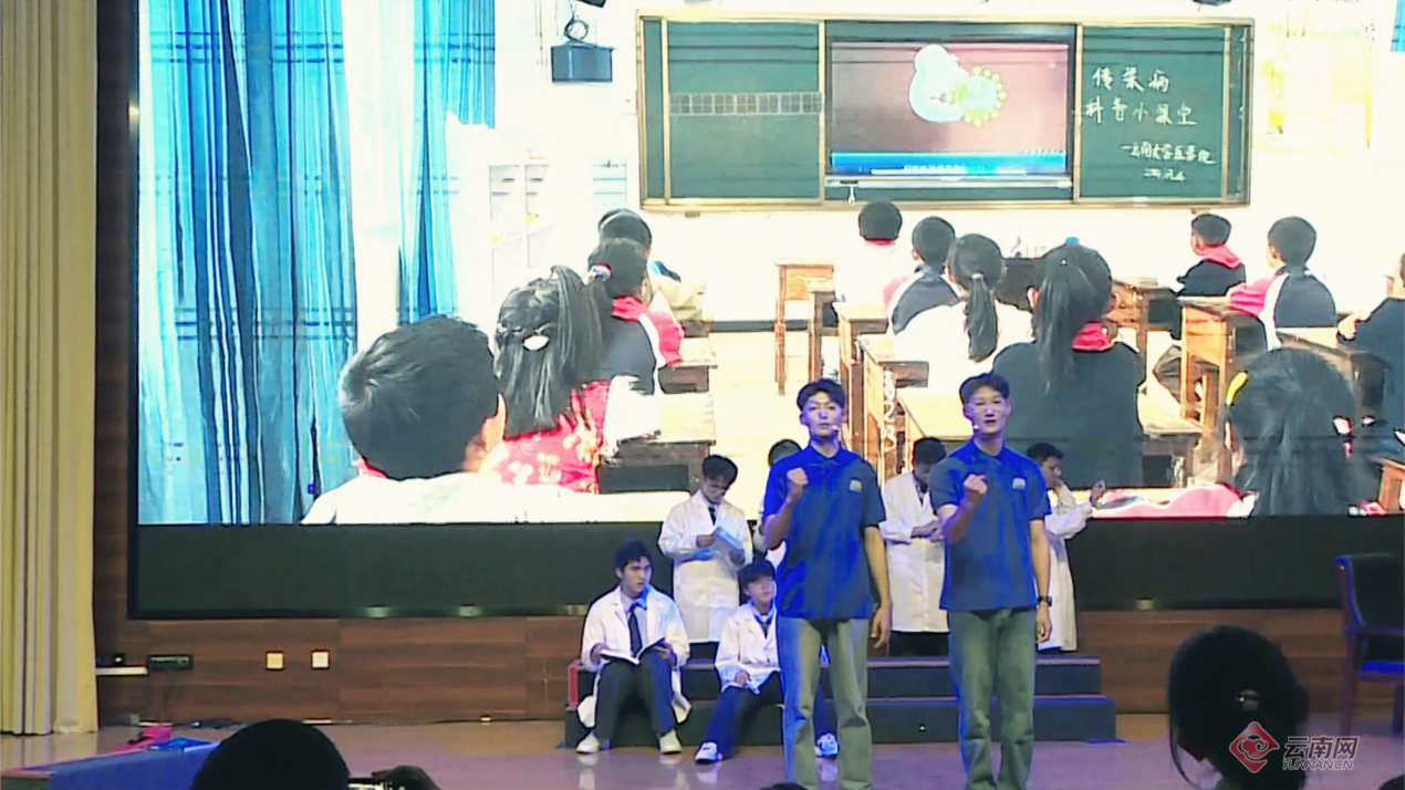节目均由医学院师生原创并倾情演绎。晚会紧扣医学主题,将美育的感染力与思政的引领力深度融合。情景剧《红医之光》以戏剧张力展现学院发展历程,诠释一代代云大医学人传承红医精神的生动实践,唱响“人民至上、生命至上”的使命担当,使思政教育在舞台情境中直抵人心。改编歌曲《我记得》以医学生社会实践为底色,以真挚歌声再现“红医下乡”的温暖瞬间,艺术表达中传递云大医学生服务社会的初心,让医学精神的传承成为美育思政的鲜活注脚。歌舞《奔跑的青春》以活力诠释青春激情,激励学子在医学征途上勇毅前行。校史院情与医学知识竞答寓教于乐,既以趣味互动普及知识,更在交流中厚植文化底蕴。