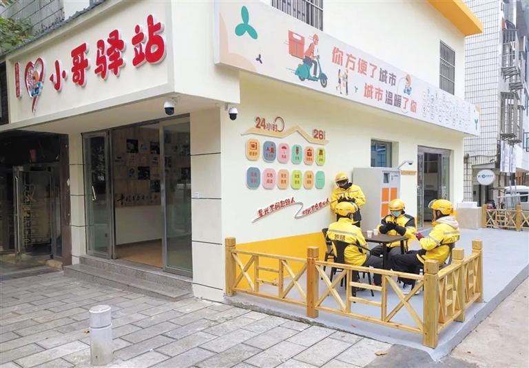 近日,记者走进麒麟区寥廓街道胜峰社区的“小哥驿站”看到,桌椅、饮水机、微波炉、应急药箱一应俱全,角落里还放置了能够消除外卖骑手“续航焦虑”的换电设备。这个24小时开放的“小哥驿站”,让奔波在外的外卖骑手有了歇脚的“暖心小家”。
