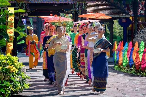 在云南民族村这一核心体验地,其以“一寨一非遗”的布局打造全方位非遗沉浸场景:寻访嘉宾沿昆明故城入园,经阿昌族迎宾、傣族洒水祈福开启行程,沿途可近距离接触户撒刀锻造、白族铜银器制作等国家级非遗,体验景颇族织锦、德昂族民俗等省级非遗,还能观赏目瑙纵歌、傣族马鹿舞及佤族、基诺族专场演出。晚间藏族村篝火打跳将活动推向高潮。全程2.5小时的寻访体验串联8个民族核心非遗资源,实现“边走边看、边体验边传播”,让非遗从“静态展品”变为“动态生活”。