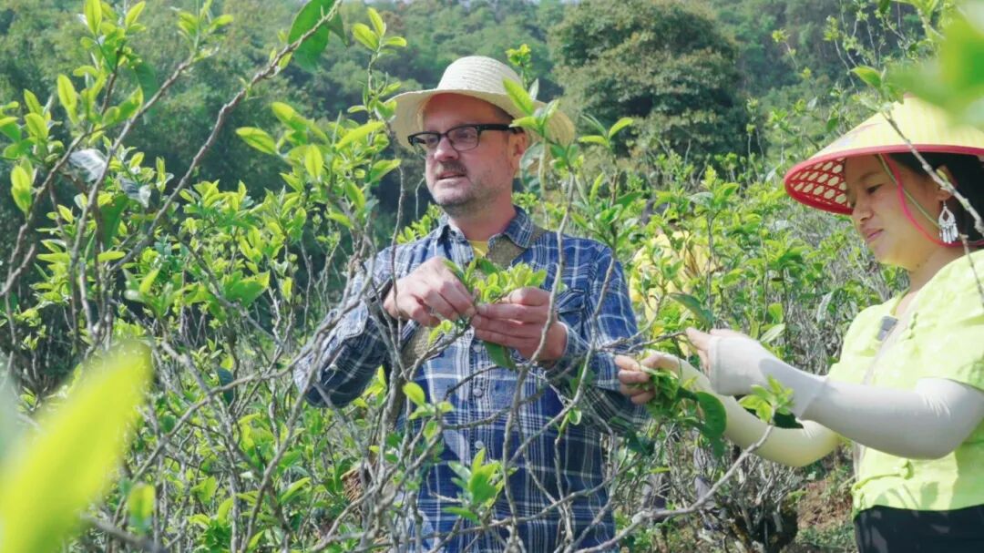 吉米原本是一位来自美国的金融工作者,几年前因朋友之邀来到双江,初尝便爱上了这杯滋味绵长的茶。从一个匆匆而过的游客,到现在在这里过上了种茶、制茶的茶生活,如今的他,不仅和本地茶农合作开发了茶旅产品,还通过写茶山日志、拍Vlog的方式向外国游客讲述在双江的东方田园生活。