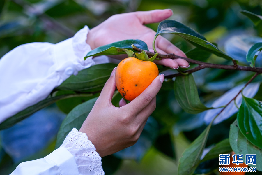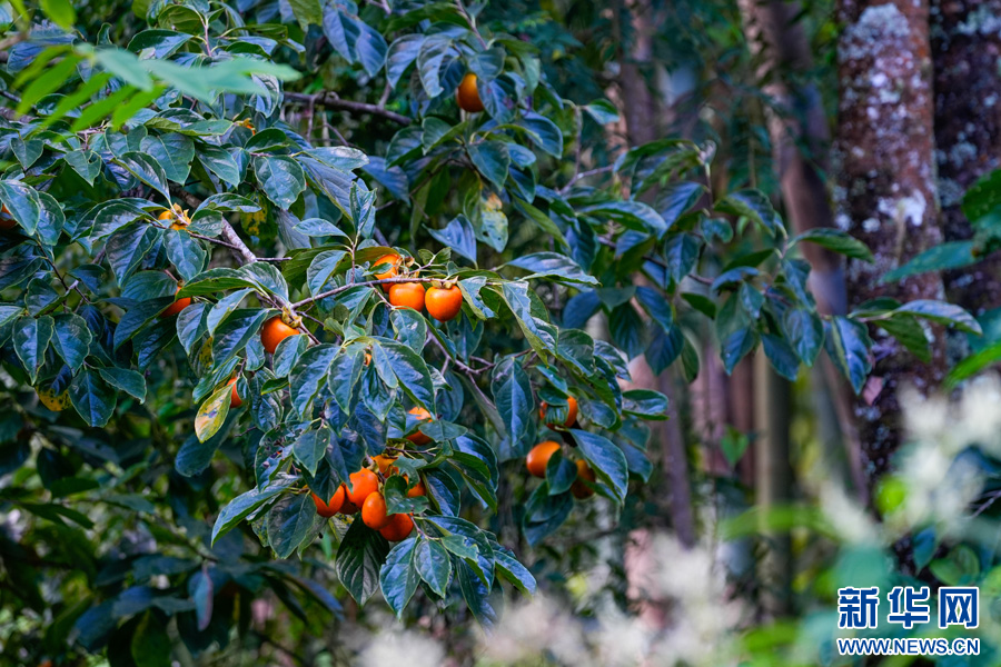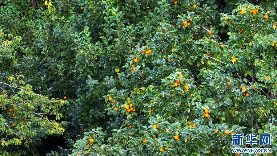 户撒乡成熟的柿子(11月6日摄)。新华网发(方雯青 摄)