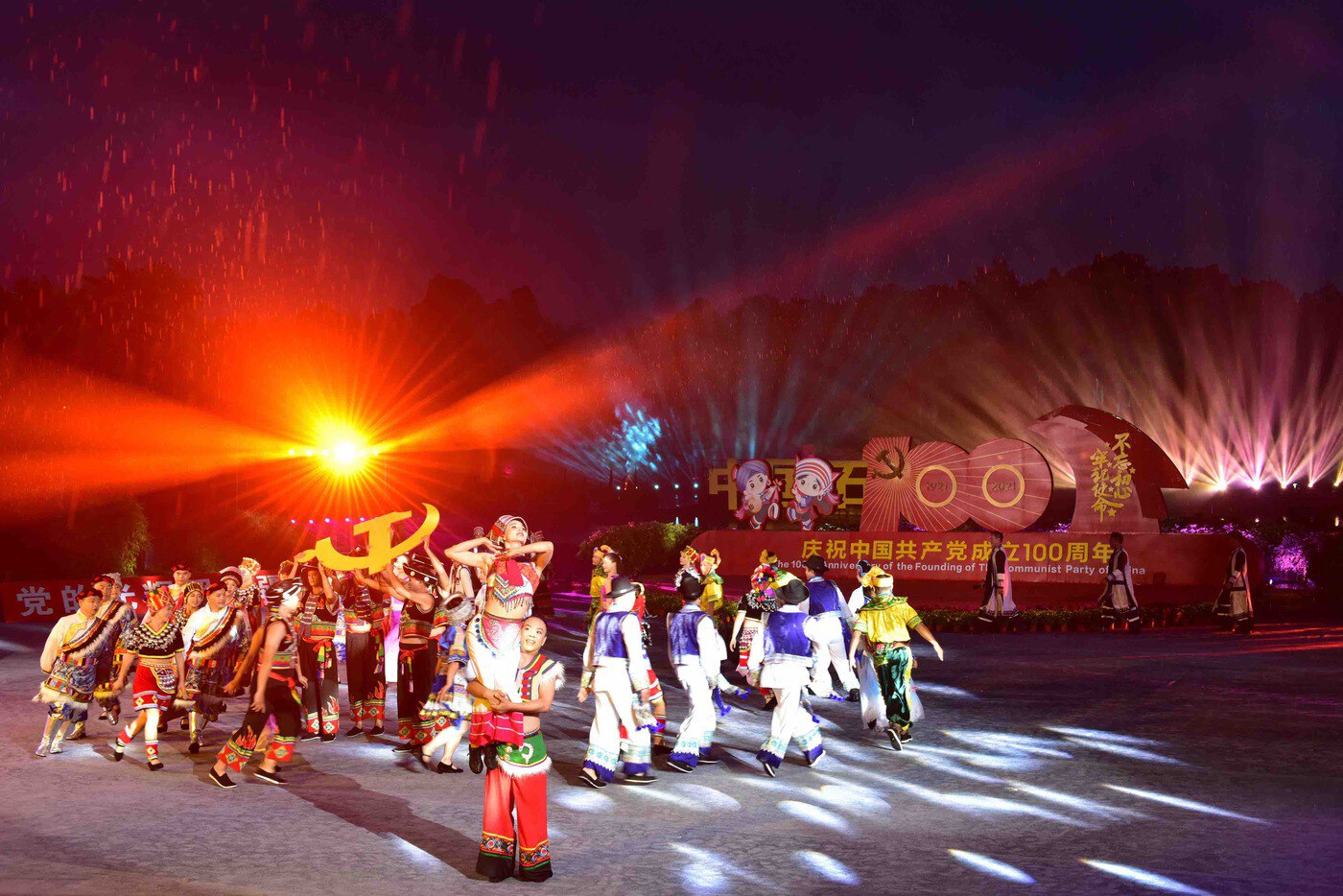 弘扬中华文化“铸魂”。打造7个爱国主义教育基地、5个民族团结广场、3条“铸牢”教育示范路线。创作和传播《远方的客人请您留下来》《阿诗玛》等一批具有鲜明中华文化特征的文化精品;举办春节、石林火把狂欢节、阿诗玛文化旅游节等活动;加大对民族古籍文献的搜集、整理、释读力度。