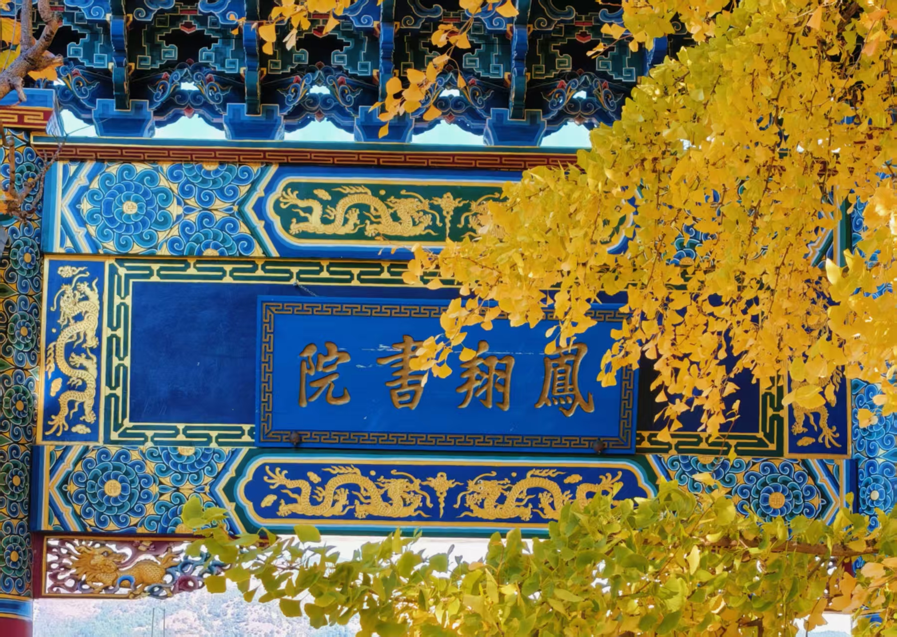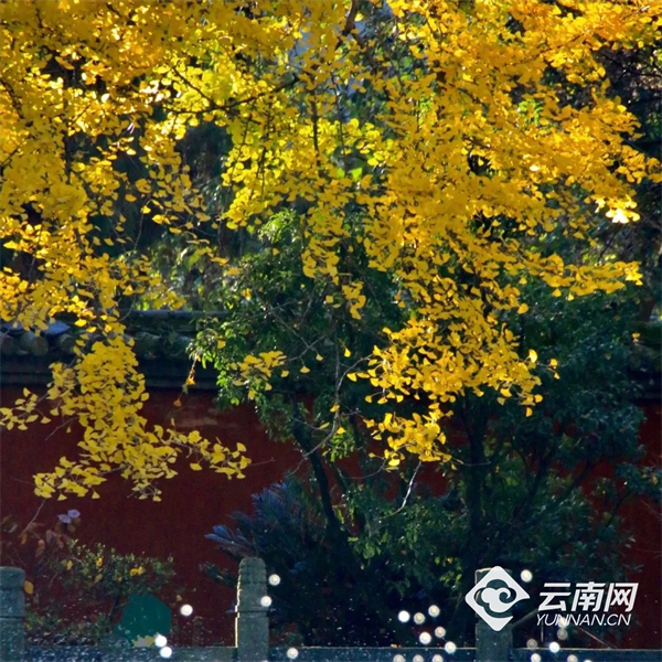 古老的红墙青瓦与金色的银杏叶相映成趣