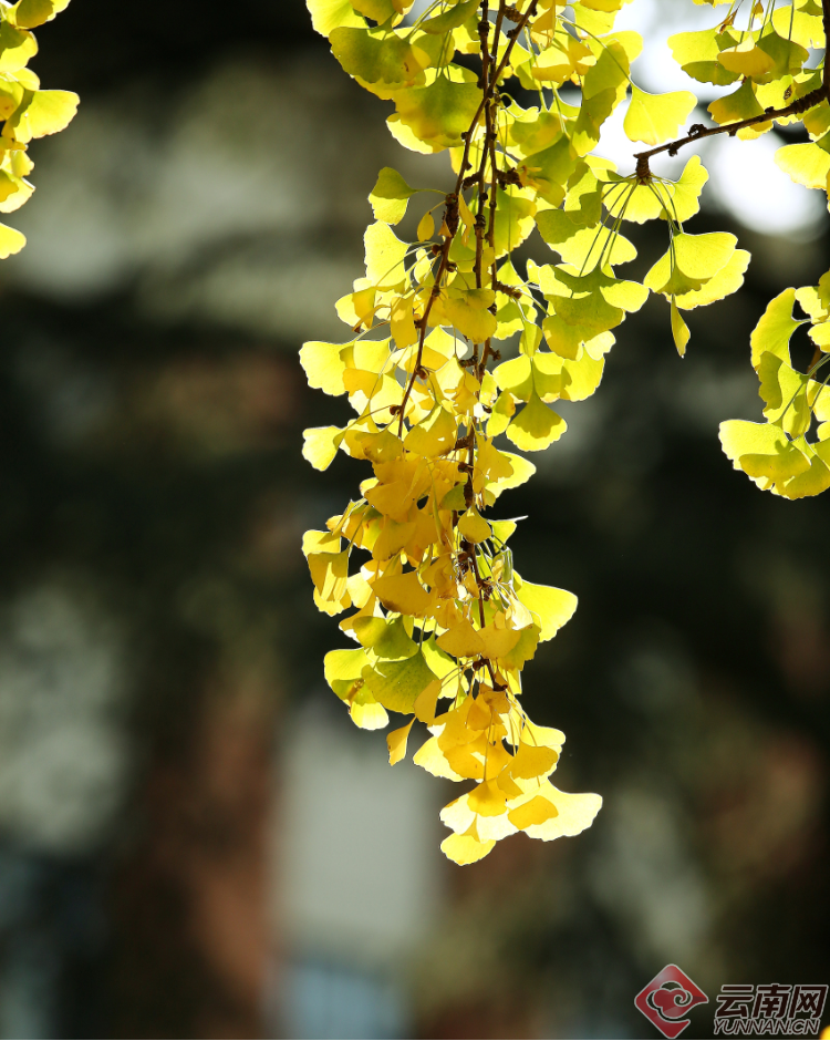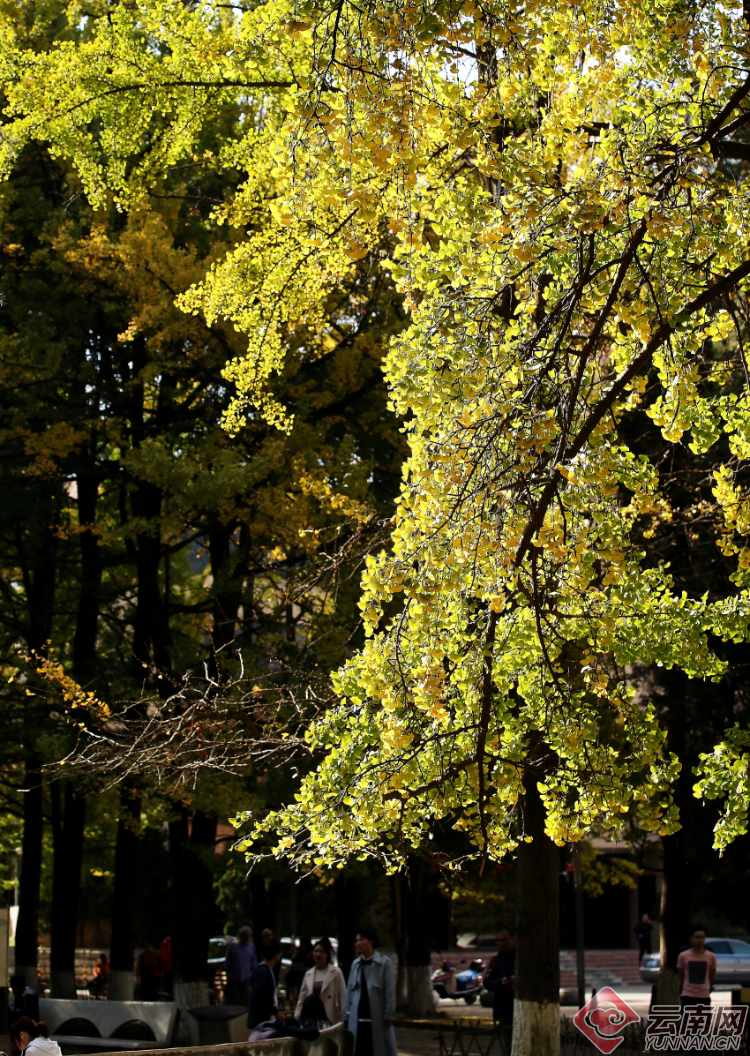 曲靖珠江源大道两侧的银杏树迎来最佳观赏期
