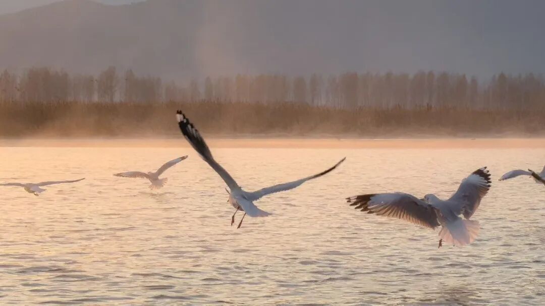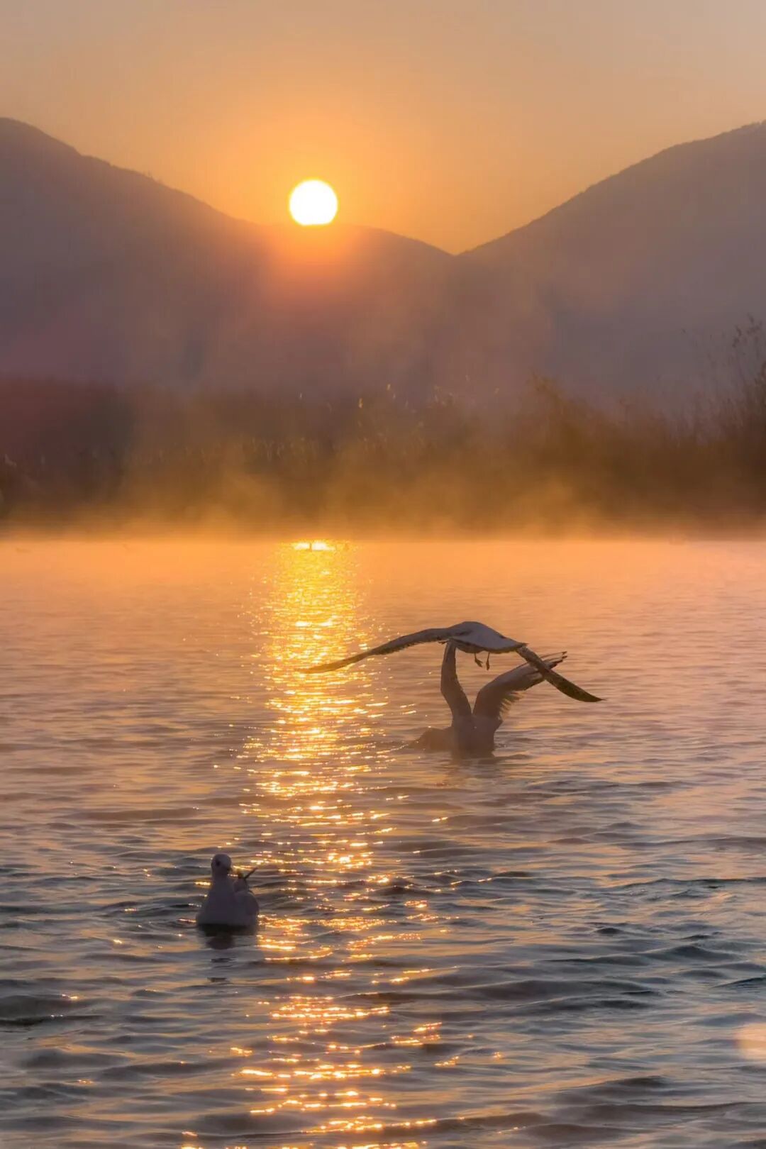 “这趟早起太值了!晨雾里的日出比想象中更震撼,就像走进了水墨画里,湖面流动的雾气、镀金的霞光与嬉戏的海鸥,构成了此生难忘的观景体验,以后还会再来。”游客谌女士难掩激动的表示。