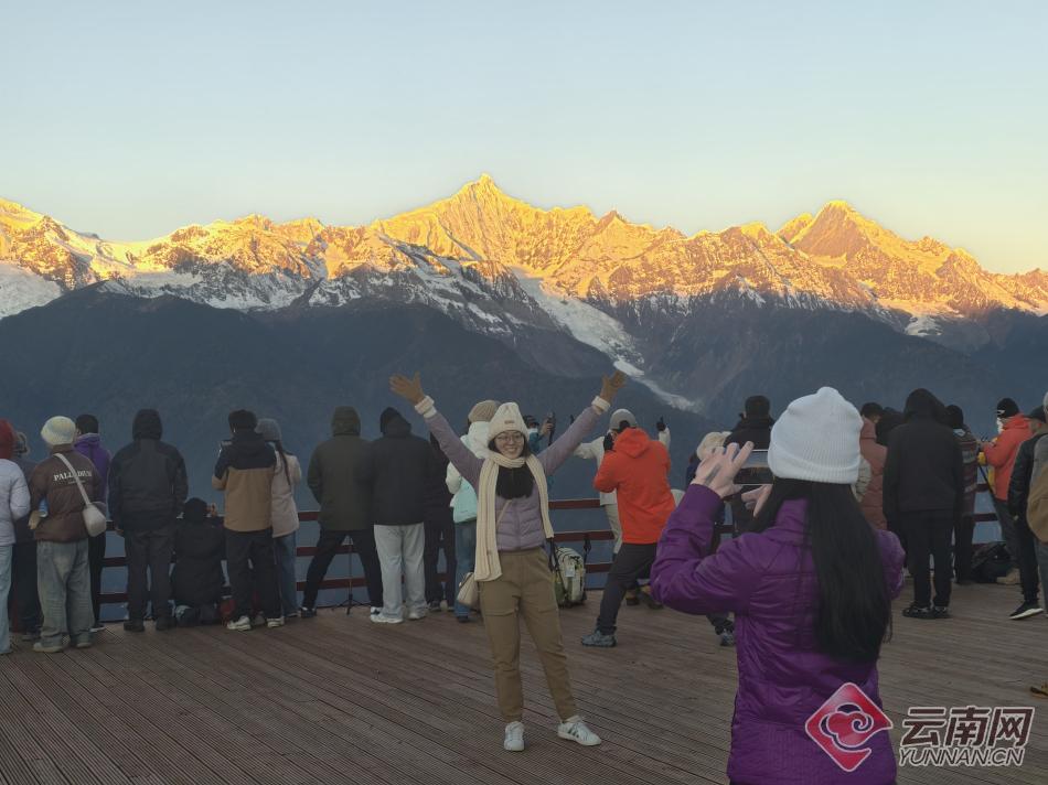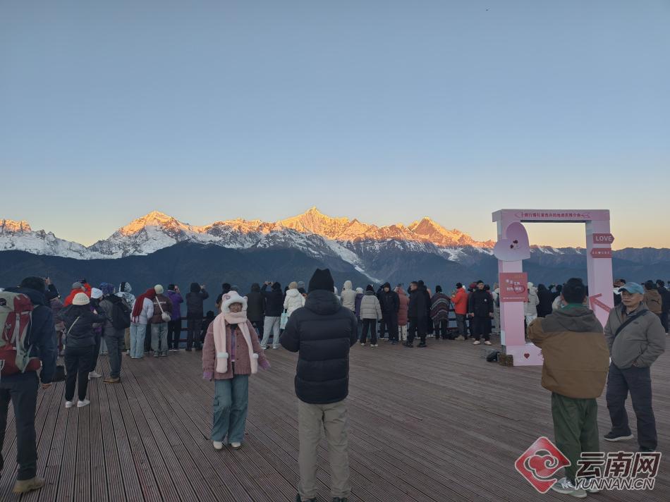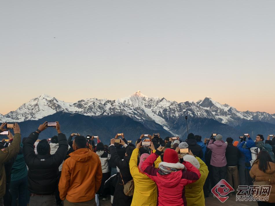进入冬季,云南迪庆藏族自治州梅里雪山景区观景平台迎来观赏季。一大早,观景台上便挤满了游客。当清晨的第一缕阳光照在梅里雪山最高峰的那一刻,游客们纷纷举起手机,记录下这一时刻。据介绍,现在是观看日照金山的最佳季节,梅里雪山景区观景平台免费开放,迎来众多游客。