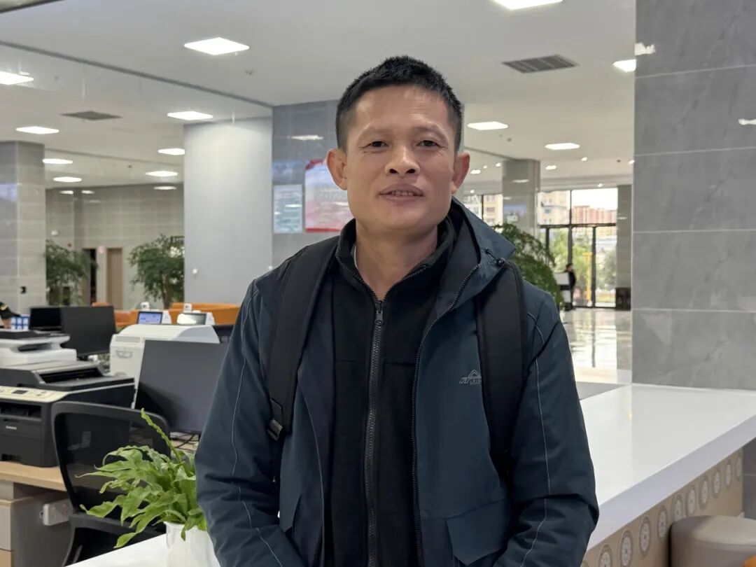 群众张刚:“我是来办营业执照的,来到一楼看见楼层指引,我就到了二楼市场监督管理窗口,通过自助机刷脸识别取票,比较方便。”