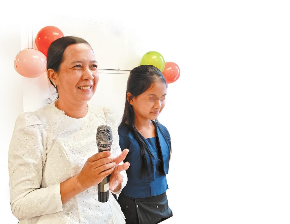 柬埔寨女孩沃伦·卡查维琪(右)和她的母亲莫占塔。记者 沈燕 摄