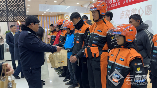 活动聚焦外卖骑手等新就业群体的实际需求,依托社区前期征集的“微心愿”清单,由共建单位云南东方时尚驾驶培训有限公司党支部主动认领并精心准备“冬日暖心礼包”。现场举办圆梦仪式,将保暖手套、保温杯等礼包送至新就业群体代表手中,以暖心实事传递组织关怀。云南东方时尚驾驶培训有限公司、云南万达纸业有限公司、云纺1972文化创意园、T0健身等爱心企业还为社区新就业群体捐赠饮用水、纸巾、头盔等实用物资。
