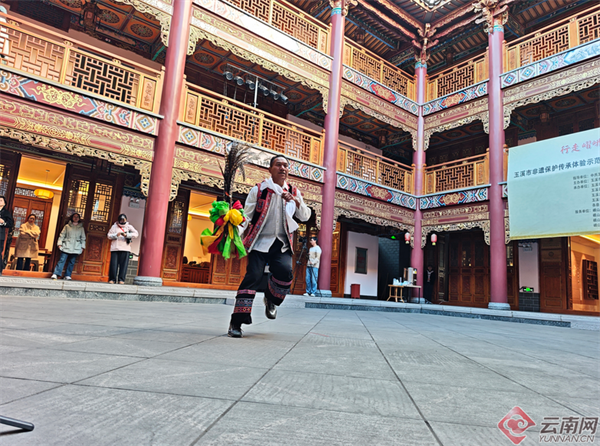 11月28日,非遗代表性传承人现场展示彝族花鼓舞。记者 王剑钊 摄