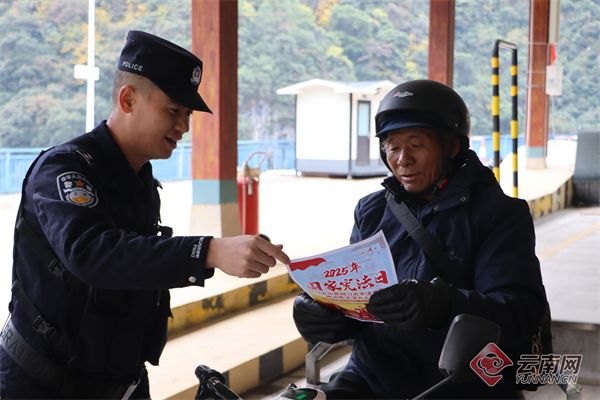 “师傅,这是宪法读本和边境法规宣传册,路上抽空看看,既懂法又能护平安!”在丙中洛边境检查站执勤点,民警趁着查验车辆间隙,将一份份满载法治关怀的宣传资料送到过往旅客、司机手中。作为滇藏边境的重要关口,这里不仅是守护安全的“防火墙”,更成为流动的“法治宣传站”。
