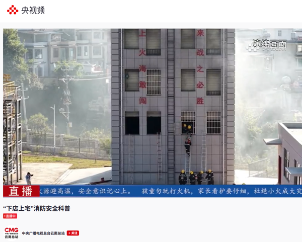 12月3日,云南省消防救援总队在临沧市开启消防安全科普直播,聚焦“下店上宅”建筑类型,采取“实景呈现+专业解读+互动参与”的形式,为广大观众送上兼具专业性与实用性的安全守护指南,助力提升全民消防安全意识与应急处置能力。央视频、新华社现场云、中国网腾讯视频、七彩云端、云南消防全平台等同步直播,吸引了273.59万人次在线观看。