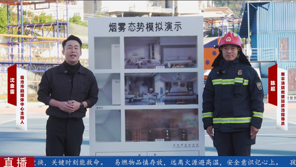 在对比实验环节,通过烟雾态势模拟演示装备,直观体现火灾中烟雾扩散路径,“无烟迅速逃生、有烟冷静应对、浓烟退守待援”。直播间做客嘉宾强调了浓烟的危害性,并结合烟雾特点介绍火场逃生要领。