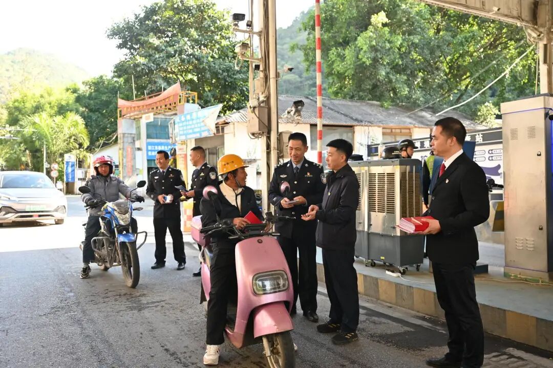 室外普法环节中,参与人员在检查站执勤区域设立专属普法点,向过往群众发放《中华人民共和国宪法》读本、民法典折页、边境管理法规提示等宣传资料。同时,工作人员还走进辖区企业开展精准普法,提升群众和企业的法治意识。
