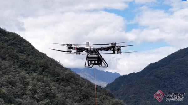 图为吊运草果飞越怒江大峡谷的无人机。(受访对象供图)