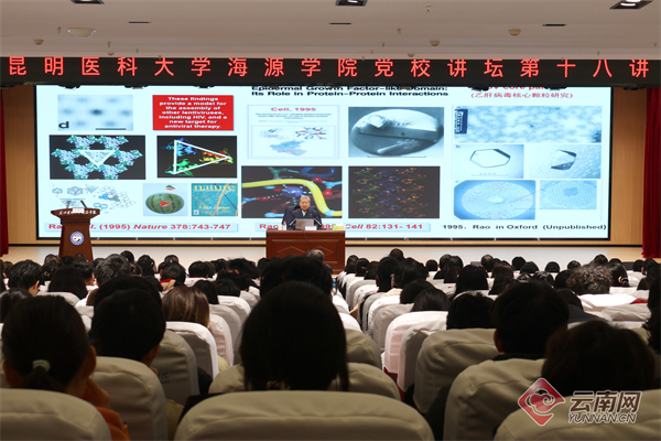 “饶院士团队通过结构生物学解析病原体三维结构的突破,不仅为人类健康筑起科学防线,更为医学教育提供了生动教材。”昆明医科大学海源学院党委书记、督导专员侯炳霞在总结中表示,科研的终极价值在于服务人民健康,医学教育的核心使命是落实“健康中国”战略,培养扎根基层、心系民生的实践型医学人才。学院将以此次报告为契机,持续深化“党建+学术”融合模式,引导师生脚踏实地精进医术、瞄准前沿勇攀高峰,在医学人才培养、科研创新、学科交叉融合领域实现更高质量发展。