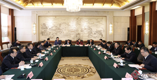 12月5日,王宁、王予波、刘洪建等省领导与出席2025腾冲科学家论坛的院士专家和大学校长代表在腾冲举行座谈。记者 雷桐苏 顾彬 摄