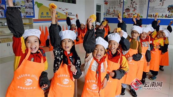 卯家湾小学少年宫的小厨师们开心举着亲手烙的饼。付兴华 摄