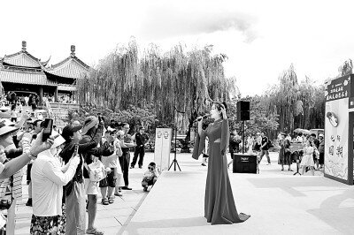 民间音乐人在旅游景区唱民歌。光明图片/IC Photo