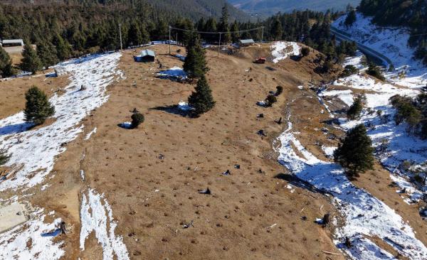 位于香格里拉市洛吉乡海拔3600米处,一场初雪刚落,群山覆上薄雪。彝族森林管护员阿鲁比哈正俯身查看树苗情况,他轻轻拂去苗木上的积雪说道:“过了这个冬天,这批树苗就能真正扎下根了。”