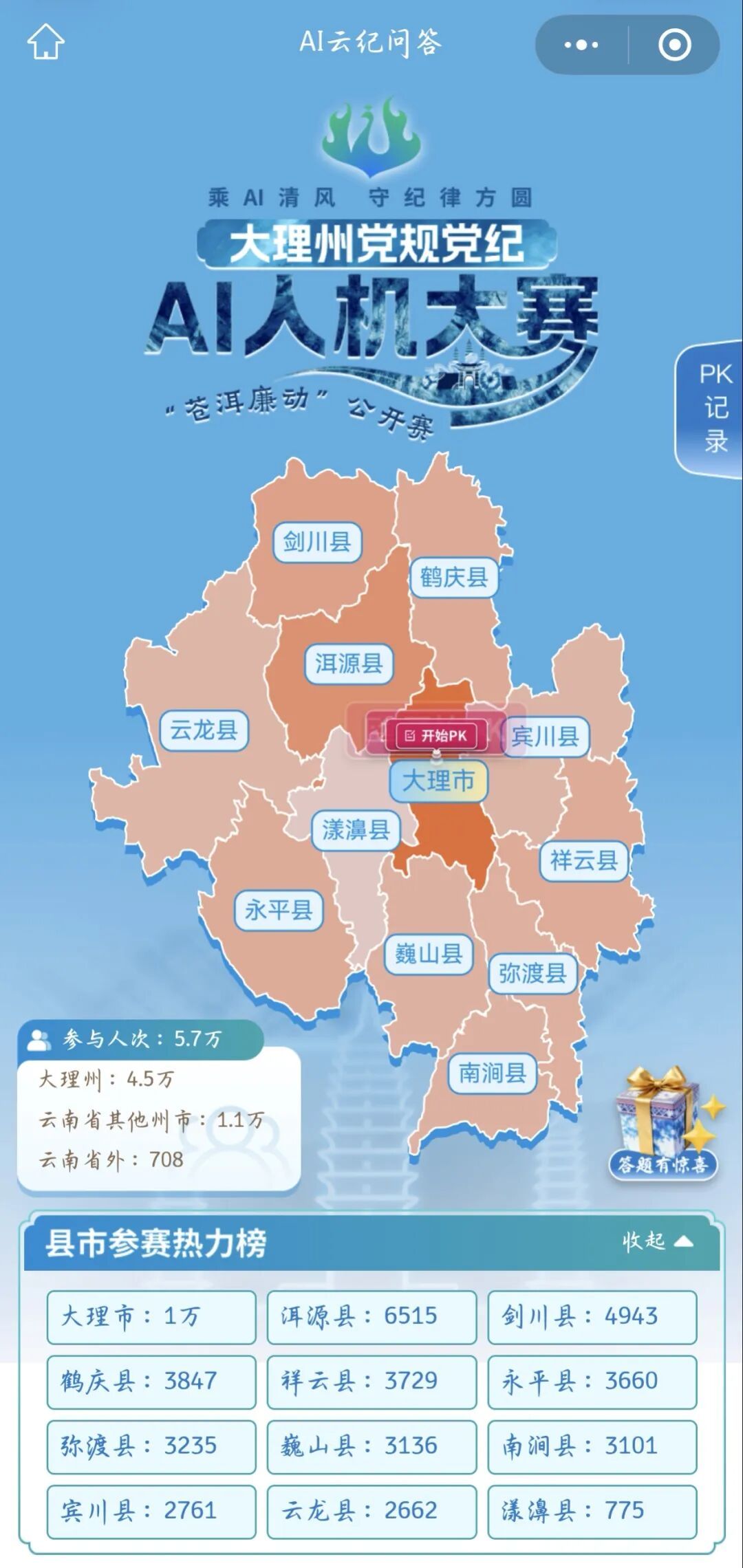 赛事启动后,迅速在州内外党员干部和社会公众中掀起参与热潮。据统计,10小时内,通过“AI云纪问答”小程序参赛的实时人数已突破5万,充分展现了新颖学习形式带来的强大吸引力和党员干部高涨的学习热情。
