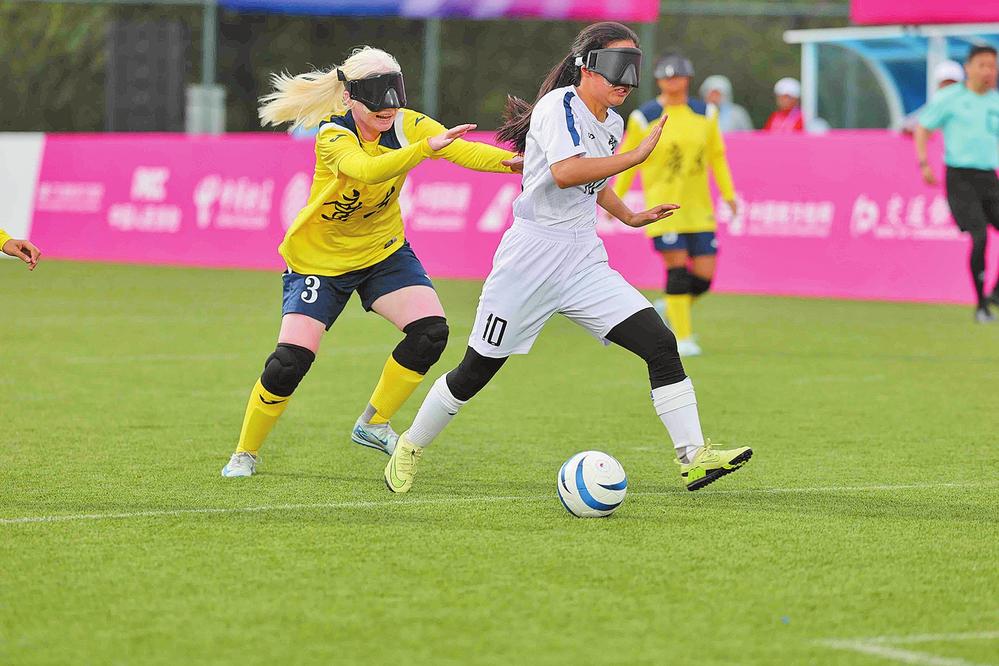云南女子盲人足球队在最后一轮比赛中2∶0战胜河南队获得冠军。记者 黄兴能 摄