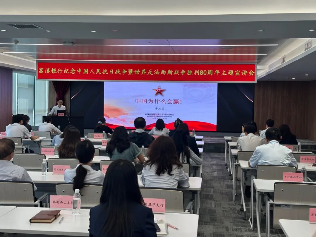 原标题:【强国复兴有我】富滇银行举办纪念中国人民抗日战争暨世界反法西斯战争胜利80周年国防教育主题宣讲会