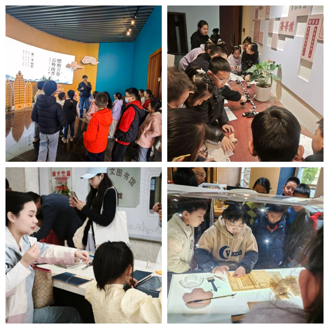 图为古籍修复、传拓技艺体验、典籍博物馆等沉浸式学习