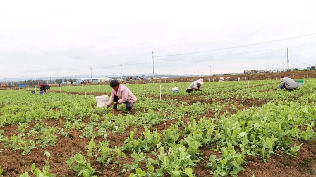 冬日时节,寒意渐浓,金马镇各村寨的田间地头却随处可见农民们忙碌的身影,广袤的田野依旧生机盎然。在该镇太平村,往年种植香葱的地块如今变身豌豆主产区,冒出嫩绿芽尖的豌豆苗抽藤吐蕊,种植户组织工人穿梭其间,娴熟地采收。