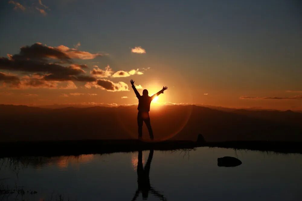傍晚6点左右,打鹰山的暮色大戏正式开场。夕阳渐渐下沉,把天空染成渐变的橘粉与鎏金,霞光漫过远处的高黎贡山轮廓,给黛色山峦镀上一层暖边。风掠过草甸时,光影在地面流动,火山湖面上倒映着漫天霞光,水天一色的绝景让人瞬间失语。