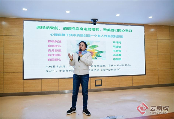 云南网讯(记者 彭锡 通讯员 柳雨婷 杨金林)为落实新时代学生心理健康工作相关要求,提升中小学教师心理危机干预专业能力,12月29日至30日,由昆明市教育科学研究院主办、五华区基础教育发展研究院承办的“学生心理问题的识别与干预”讲师专题培训举行,并同步启动昆明市中小学相关公益讲座首场巡讲。