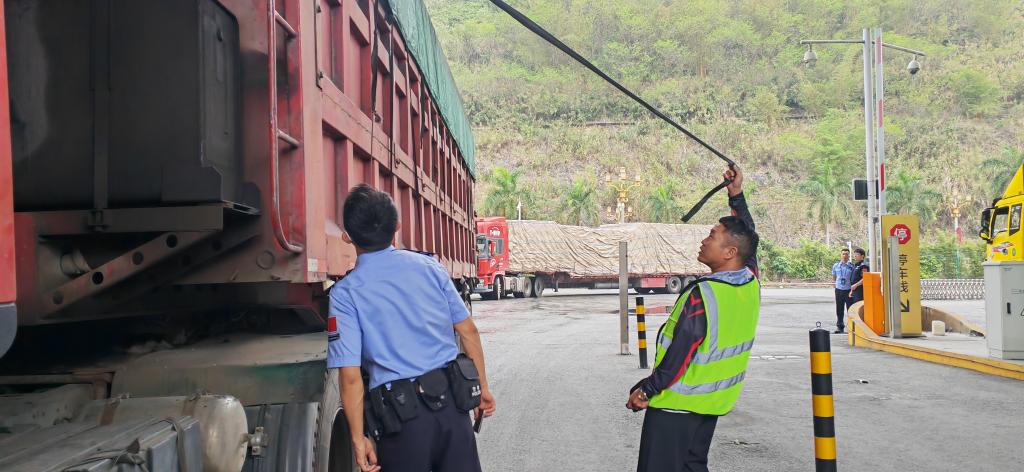 河口出入境边防检查站民警正在仔细检查货车。新华社记者浦超 摄