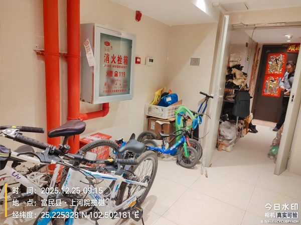 隐患问题:消防联动控制设备不能正常运行;公共门厅违规停放电动自行车。