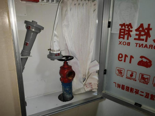 隐患问题:南区8栋楼外水泵接合器被绿化带遮挡;北区1栋八层一个室内消火栓口缺失;南区8栋管道井内堆放大量可燃杂物。