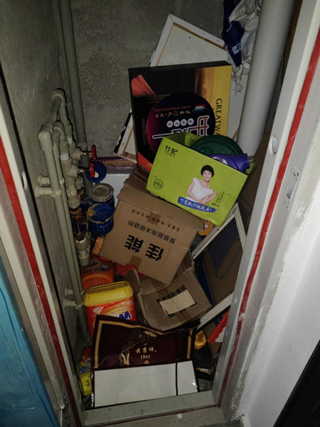 隐患问题:7幢202疏散通道内摆放生活用品。