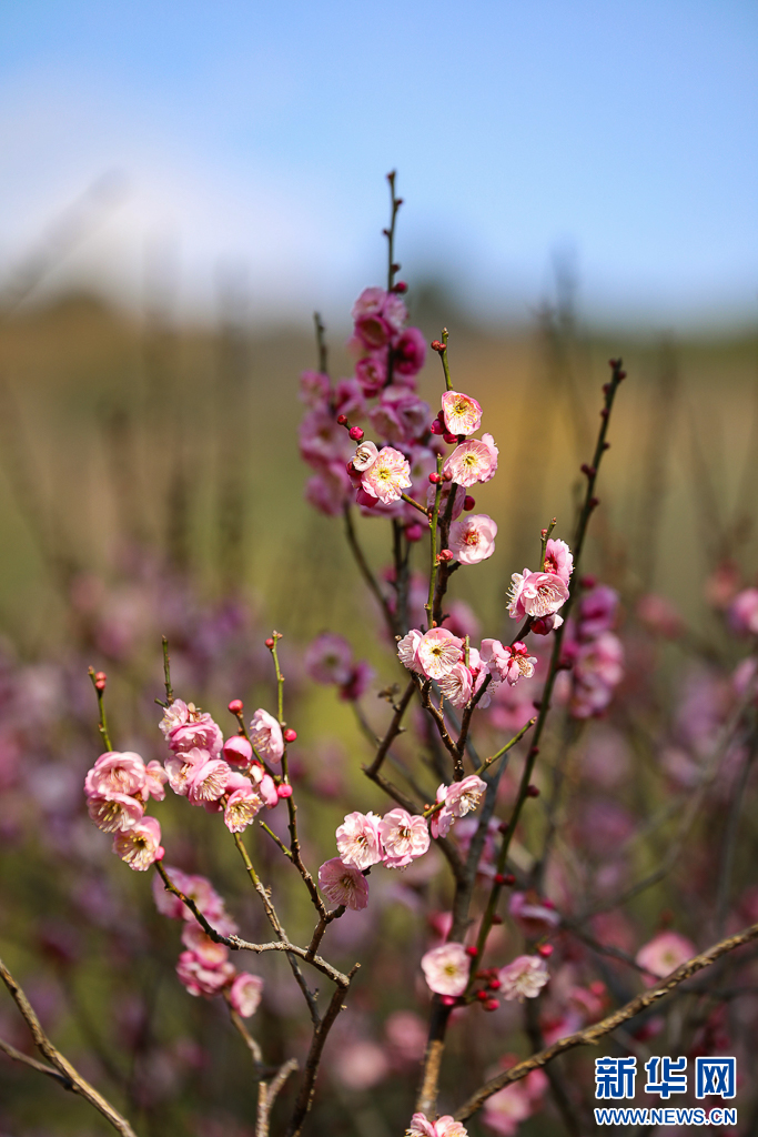 冬日暖阳下绽放的梅花(1月10日摄)。新华网发(郑益 摄)