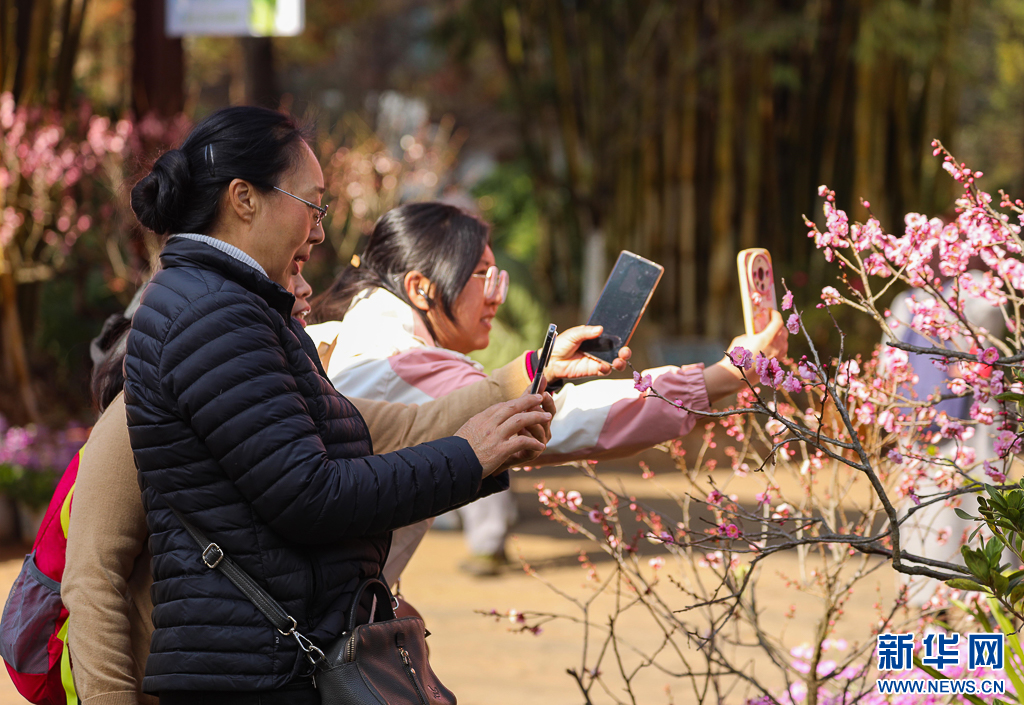 近日,云南省昆明市黑龙潭公园内,红梅、白梅悄然绽放,粉瓣似霞、素蕊如雪,淡雅梅香萦绕林间,吸引了不少市民和游客前来打卡拍照。