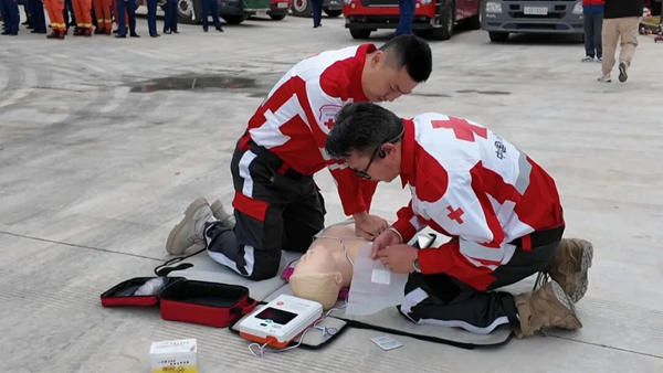 挂牌入驻当天,现场组织开展了心肺复苏急救演示观摩、多车相撞事故快速灭火救援、分布式光伏电站火灾处置等实战演练,直观展现了队伍的专业素养与实战能力。